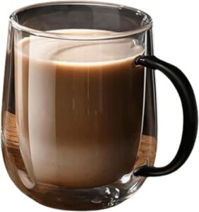 Sefoemut二層断熱ガラス製コーヒーカップ350 ml/450 ml撹拌スプーン結露防止透明マグカップ保温、保冷平底設計食器洗い機洗浄カッププレゼントアイデア家庭用 (450ml,カバーなし) [並行輸入品]