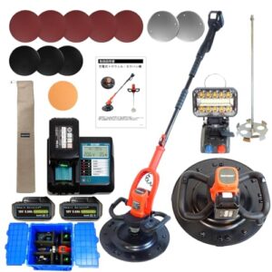 \改良型・プレミアム装備/【日本企業】SMART SELECTS 充電式トロウェル・カクハン機 ハンドトロウェル コンクリート研磨機 ウォールサンダ ZX-39 日本語取扱説明書【専用ケース付き】 充電式 電動 左官 不陸調整 土間仕上げ 6速調整 コテ仕上げ 18V 5.0Ah マキタ互換 バッテリー 2個 液晶表示充電器1個 4種類回転盤 攪拌棒 専用延長ハンドル PSE認証済み 時短