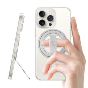 EWA MagOne 第3世代 [MagSafeに対応] フィンガーストラップ付き携帯電話グリップスタンド、取り外し可能なマグネットリングホルダーキックスタンドループ for iPhone 16,15, 14, 13, 12シリーズ-(シルバー)