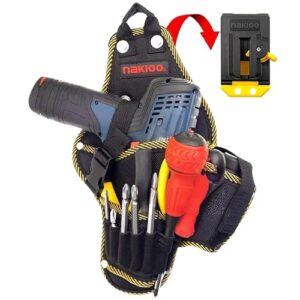 腰袋 釘袋 工具入れ 電動ドリル用ツールホルダー バネ式開閉 3段構造 工具落下防止 着脱式工具ホルダー付き 防水オックスフォード布 ドライバーホルダー 部品収納 電気工事・大工・DIY・釣り対応 作業用ツールベルト (ドリルバッグセット) [並行輸入品]