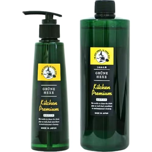 ミマスクリーンケアの緑の魔女キッチンプレミアムは、マスカットの香りが心地よい食器用洗剤のセットです。本体200mlとつめかえ用480mlが含まれ、強力な洗浄力で油汚れをしっかり落とします。
