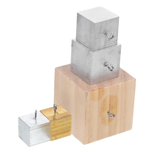 WESIEVYAの高校物理実験用5PCS密度キューブセットは、銅、鉄、アルミ、木製の素材を使用。フック付き円筒と直方体形状で、教育科学キットに最適です。