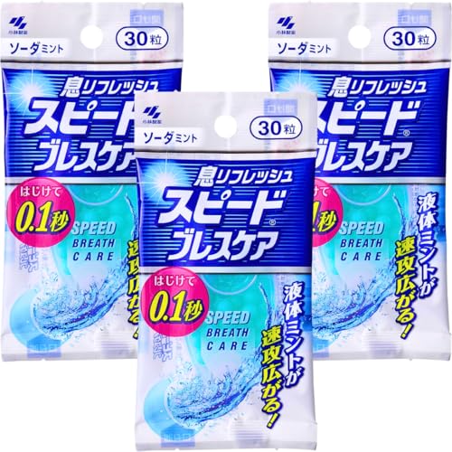 小林製薬のスピードブレスケア・ソーダミントは、口臭対策とオーラルケアに特化したタブレットです。30粒入りのパッケージが3個セットとなっており、手軽に息のケアができます。その爽快感で口臭を抑え、清潔感をアップします。