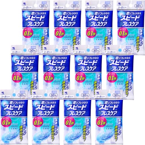 小林製薬のスピードブレスケアソーダミントは、口臭対策に特化したオーラルケア商品です。30粒入りのパッケージが12個セットになっており、手軽に口臭ケアができます。爽快なソーダミント味が特徴です。