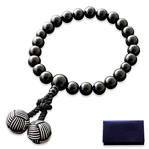 京仏壇はやしの男性用正絹数珠は、黒オニキスを使用した2色梵天房付きです。数珠袋セットで、すべての宗派で使用可能。葬儀など幅広い場面で活躍します。
