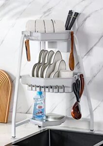 シンク上 水切りラック 食器 水切りかご 台所用品ホルダ キッチン収納棚 大容量 滑り止め 省スペース ステンレス製 (標準スタイル, 白/ダブルレイヤー)