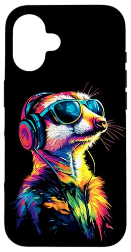 サングラスをかけたカラフルなミーアキャットのiPhone 16用スマホケース。可愛さ満点のデザインで、持ち歩く楽しさが倍増!耐衝撃性も備えた実用的なアイテムです。