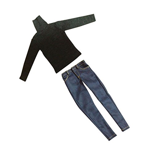 Sharplace フィギュア人形用 長袖 ハイネック Tシャツ ジーンズセット 服 12インチ 男性 1/6ドール用の高価買取