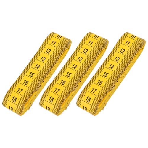HAPINARYの3個セット、グラスファイバー製の黄色巻尺は3mの長さで、両面フレキシブルなテープメジャーです。身体測定やウエストライン測定に最適な携帯用巻尺です。