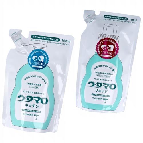 ウタマロキッチン食器洗い洗剤セット。250mlのグリーンハーブの香りと350mlのフローラルハーブの香りの液体洗剤が含まれています。部分洗いにも対応。