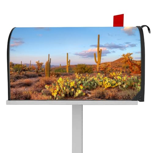 EMMTEEY 磁気メールボックスカバー 後期ライト ソノラ砂漠のサグアロを照らす 郵便受けラップ ポストボックスカバー ヤード用 21×18インチの高価買取