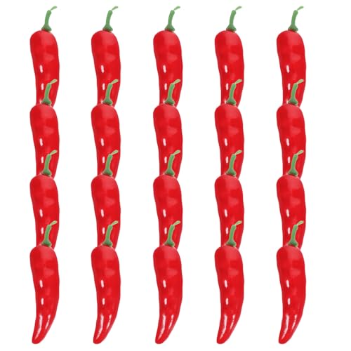 Kisangelの人工チリ食品模型は、20個セットの自然な形状フォーム製で、模造唐辛子として家庭や店舗、ショールームの装飾に最適な写真小道具です。