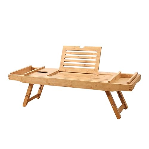 この2in1ベッドアンドバストレイは、バスタブ用シェルフとしてもノートパソコンデスクとしても使えます。サイズは75~110cmで、ブックスタンドとワイングラスホルダー付きです。