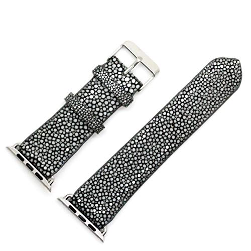 エイ革ガルーシャ製のApple Watch対応バンド。色はグレーで、サイズは44mm/45mm/46mm/49mm/42mmに対応。Series SE/11/10/9/8/7/6/5/4/3/2/1/Ultra用。