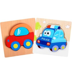 DELUXEFOX 木製パズル 2個セット 型はめパズル 赤ちゃん モンテッソーリ 知育玩具 1 2 3 歳幼児早期開発 形合わせ 形認識 色認知 色彩感覚 脳トレ おもちゃ 積み木 パズル 男の子 女の子おもちゃ 誕生日プレゼント (パトカー + 自動車)