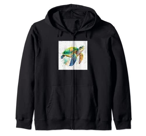 かわいいウミガメが飛び散るカラフルなペイントのイラストが描かれた女性用ジップパーカー。オシャレで個性的なデザインで、気軽に着こなせるアイテムです。