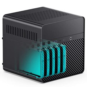 JONSBO N2 ブラック NAS ITX ケース 5+ 1 ディスクベイ ミニアルミニウムケース、内蔵12cm ファン、SFX Power Bite (最大150mm)、65mm CPUクーラー対応、統合された上部カバー取り外し可能、ブラック。