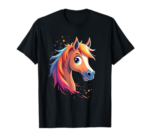 カラフルな馬の顔とペイントスプラッシュが印象的なTシャツ。ユニークでアートなデザインが際立ち、個性を表現。柔らかな素材で快適な着心地。