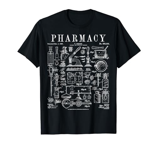 薬局技術者や薬剤師向けのヴィンテージ特許プリントTシャツ。ユニークなデザインで、薬学の魅力を伝えます。快適な着心地とスタイルを兼ね備えた一枚です。