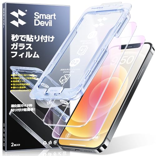 SmartDevilのブルーライトカットガラスフィルムは、iPhone 12/12 Pro用の2枚セット。目の疲れを軽減し、簡単に貼り付け可能。米軍MIL規格で耐衝撃、無色透明で気泡ゼロ、指紋防止機能も備えています。