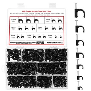 OCR ケーブルワイヤークリップ 600個パック ブラックケーブルクリップ ラウンドネイルワイヤークランプ スチールネイルコード管理キット あらゆるケーブル固定用