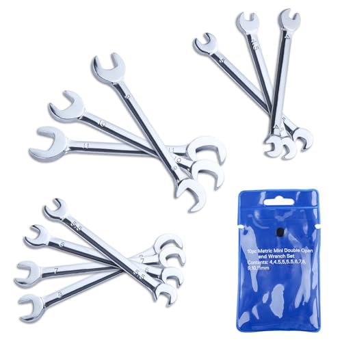 薄型オープンエンドレンチセット。ミニダブルオープンエンド、メトリック対応。アングルレンチ、コンビネーションレンチ各種。オーガナイザーバッグ付き、ウルトラスリムデザイン。サイズ: 4mm-11mm、10ピースセット。