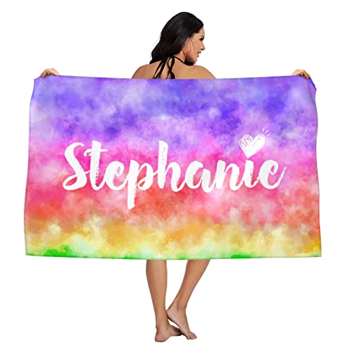 名前入りマイクロファイバー&コットンビーチタオル。130x80cmサイズで、太字フォントスタイルの個性的なデザイン。誕生日や母の日、父の日、旅行のギフトに最適。