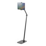 サンワダイレクトのタブレットスタンドは、床置き型で高さ・角度調整が可能。360度回転し、4~13インチのタブレットやiPadに対応。寝ながらでも快適に使用できるブラックモデルです。