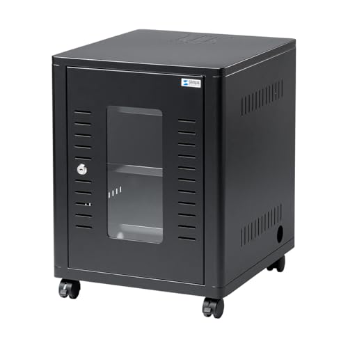 サンワダイレクトの小型サーバーラックは、幅40cm、奥行45cm、高さ53cmで、鍵付きの収納ラックです。棚板が3枚付属しており、ルーターやNAS機器の収納に最適です。