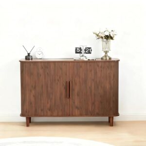 YAMAKAWAKAGU キャビネット 収納 幅120cm サイドボード 木製 リビングボード タンブールドア 脚付き 両開き チェスト 大容量収納 収納棚 ローチェスト タンス 木目調 キッチン テレビ台 ラック サイドチェスト