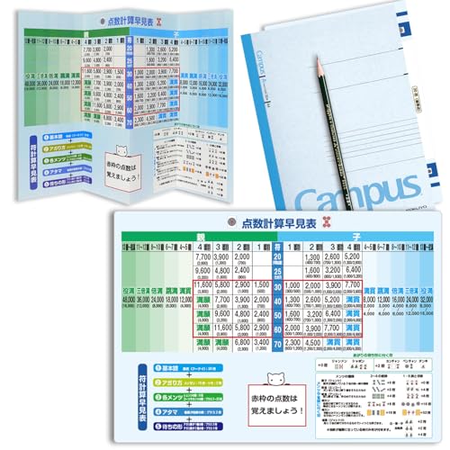 麻雀点数計算早見表セットは、簡単に点数を計算できる便利なアイテムです。表形式で役ごとの点数を示し、初心者にも扱いやすいデザイン。ゲームをスムーズに進行させるための必需品です。