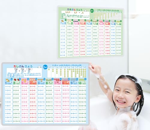 足し算・引き算お風呂ポスター2枚セットは、5才から7才向けの算数学習用知育玩具です。A3サイズのイラストを使って、楽しく数字や計算を学べます。入学前の準備や小学校低学年の学習に最適です。