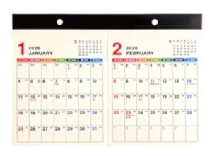 2026年 A4サイズ カラフル 壁掛け 2ヵ月カレンダー