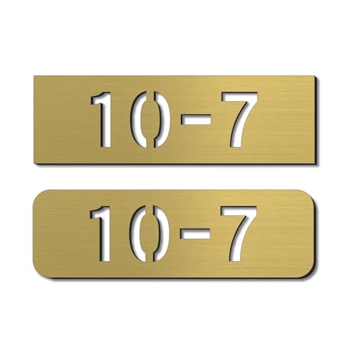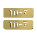 かたちラボの抜き文字タイプの表札は、角の形が選べるSサイズのプレートです。数字のみ1行専用で、屋外対応の日本製アクリルを使用。ゴールド仕上げで、マンションの部屋番号などにも最適。シール式で取り付け簡単。