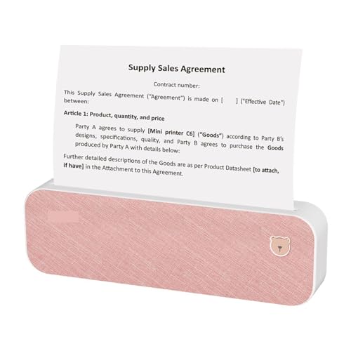 A4サイズの直接熱転写ワイヤレスラベルプリンター。ミニモバイルフォトプリンタとして、A4/2/3/4インチ幅の用紙に対応。スマートフォン専用、ピンク色デザイン。