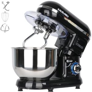 KALELAISU 卓上型ミキサー スタンドミキサー 5.5L大容量 7段階スピード調節 99分タイマー機能 ダブル攪拌フック同時作動設計 4種アタッチメント 一台三役 1200W 練る 混ぜる 泡立てる パンこね機 簡単 お菓子 ケーキ作り 業務用 家庭用 キッチンエイド stand mixer 業務用スタンドミキサー (黑)