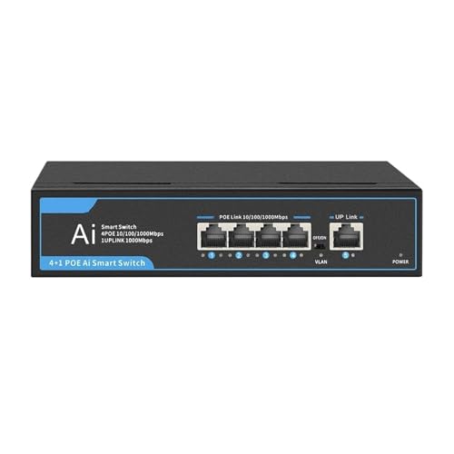 フルギガビット対応の5ポートPOEスイッチ。各ポート1000Mbpsで、IPカメラやWiFiアクセスポイントに最適。65W出力で電力効率も良好。