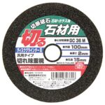 SK11(エスケー11)のディスクグラインダー用切断砥石、石材用GC36Mは、直径100mm、厚さ2.0mm、内径15mmの仕様。高品質な研磨性能で、石材の切断に最適です。