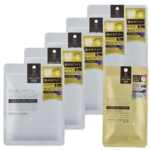 クオリティファースト ダーマレーザー スーパーVC100 ホワイト マスクは、透明感を引き出し、くすみケアに最適な日本製シートマスクです。レチノールと4種のビタミンC配合。5枚セットとEXスーパーVC1枚付き。