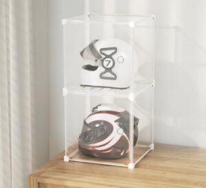 Tuyiutm ヘルメット 棚、ヘルメットディスプレイスタンド、 オートバイのヘルメット収納キャビネット、 家庭用防塵ラック オートバイの電動自転車のヘルメットの保管 にとって 衣類、バッグ、格納容器 サッカー (1列 2 層)