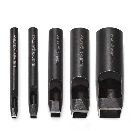 WUTA 5セット正方形穴あけポンチは、レザークラフト用の鋼製工具です。サイズは4x4mm、6x6mm、10x10mm、15x15mm、25x25mm。正確で、美しい穴を簡単にあけることができます。