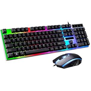 / LOORGVEL 有線usbゲーミングキーボードとマウスセット メカニカル光沢キー耐摩耗性設計 家庭 オフィス カフェ対応 ゲーマー向け贈答用ホワイト