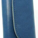 ネイビーの栃木レザー製キーケース。日本製で、本革ヌメ革を使用。スマートキー対応で、カード入れもあり。4本のキーリング付き。おしゃれで可愛いデザインが人気。