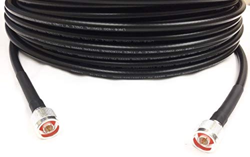 Nオスto NオスのLMR400同軸ケーブル、長さ40フィート(約12.2メートル)、50 Ω仕様、電子レンジ互換。ブラックデザインで、屋外アンテナや通信機器接続に最適です。