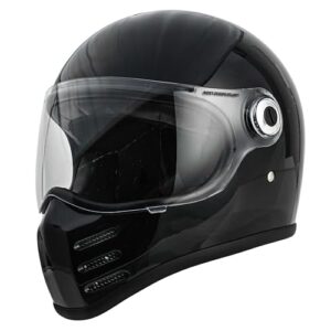 RIDEZ X グロス ブラック フルフェイスヘルメット ヘルメット バイク シールド付き ネオクラシック 艶あり 黒 Lサイズ
