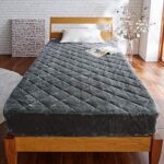 [ベルメゾン] ボックスシーツ 一体型 洗えるメルトロ ベッドパッド・敷きパッドは、セミダブルサイズでチャコールカラーの製品です。洗濯可能で手軽に清潔に保て、快適な寝心地を提供します。