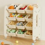 Kennkariの4段おもちゃ箱は大容量で、子ども用の収納ラックです。分類収納が可能で、インナーボックス付き。コンパクトでキャスター付き、かわいいデザインで、片付け習慣を身につけるための知育家具として最適です。