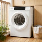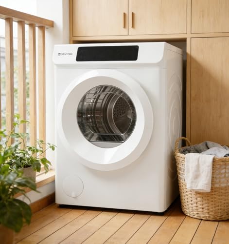Kennkariの8kgドラム式衣類乾燥機。12種類のコース、予約機能、2層フィルター搭載。高温除菌やシワ取りも可能で、コンパクト設計。新生活に最適、PSE認証済み。