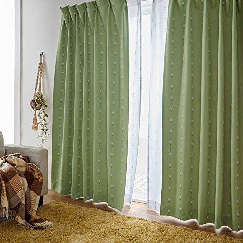 満天カーテン セミ オーダー 多色展開 厳選サイズ【 幅も丈も5cm単位で選べる 遮光カーテン 】 全3000サイズ展開 無地 遮光 断熱 形状記憶加工 洗濯機OK オーダーカーテン ウィード-グリーン 幅100cm 丈200cm 【1枚入】