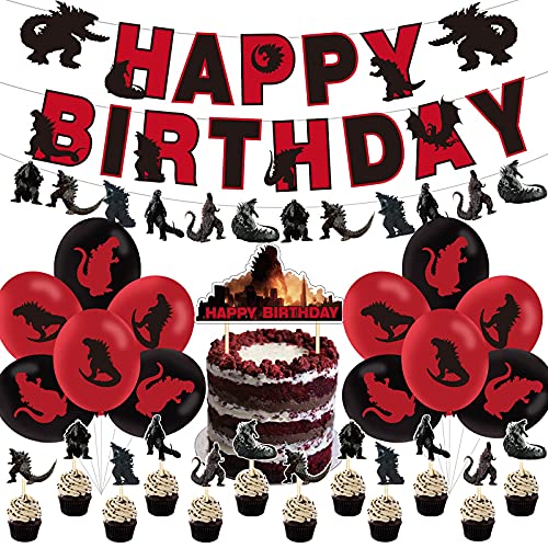 BerYaoYaoのゴジラ対コングバースデーパーティー用品には、バルーン、バナー、ケーキトッパーが含まれています。特別なデコレーションで楽しい誕生日を演出!